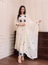 This graceful lavender kurti set brings together elegance and comfort in the most stunning way. Designed with soft, flowy fabric, it features exquisite white floral embroidery on the neckline, sleeves, and dupatta, giving it a beautifully refined look. The sheer embroidered dupatta adds an extra touch of charm, while the straight-fit pants complete the outfit with simplicity and style. Perfect for festive occasions, family gatherings, or daytime celebrations, this outfit offers a fresh, feminine, and effortlessly classy appearance.